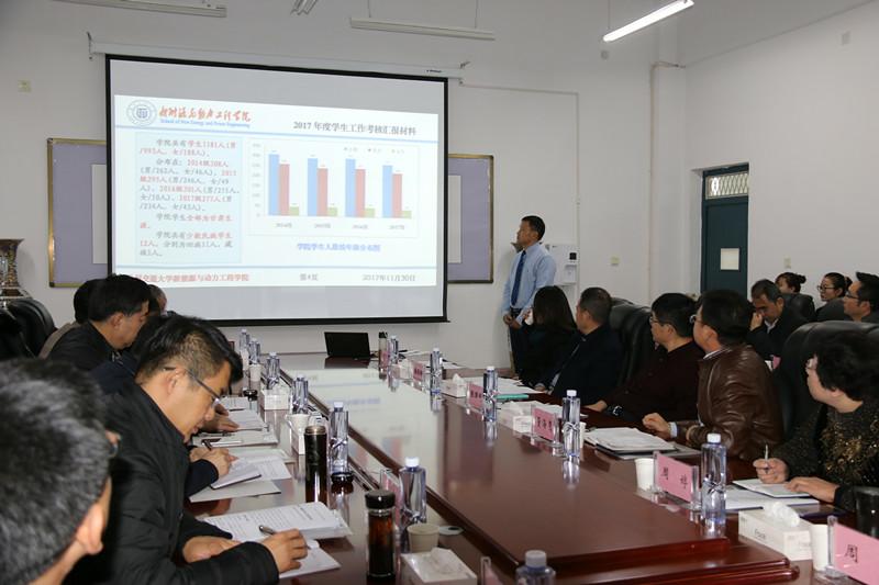 會前,新能源學(xué)院院長董海鷹考核組總體匯報(bào)了學(xué)院的師資情況、工作思路、工作措施、取得的成績及面臨的困難。