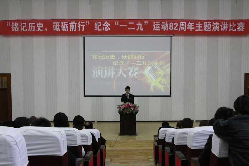 為紀(jì)念一二·九學(xué)生愛國運(yùn)動(dòng)82周年,弘揚(yáng)新時(shí)代學(xué)生愛國主義精神,12月8日下午,能源工程系在正德廳舉行了“銘記歷史砥礪前行”主題演講比賽,系上全體師生參加此次活動(dòng)。