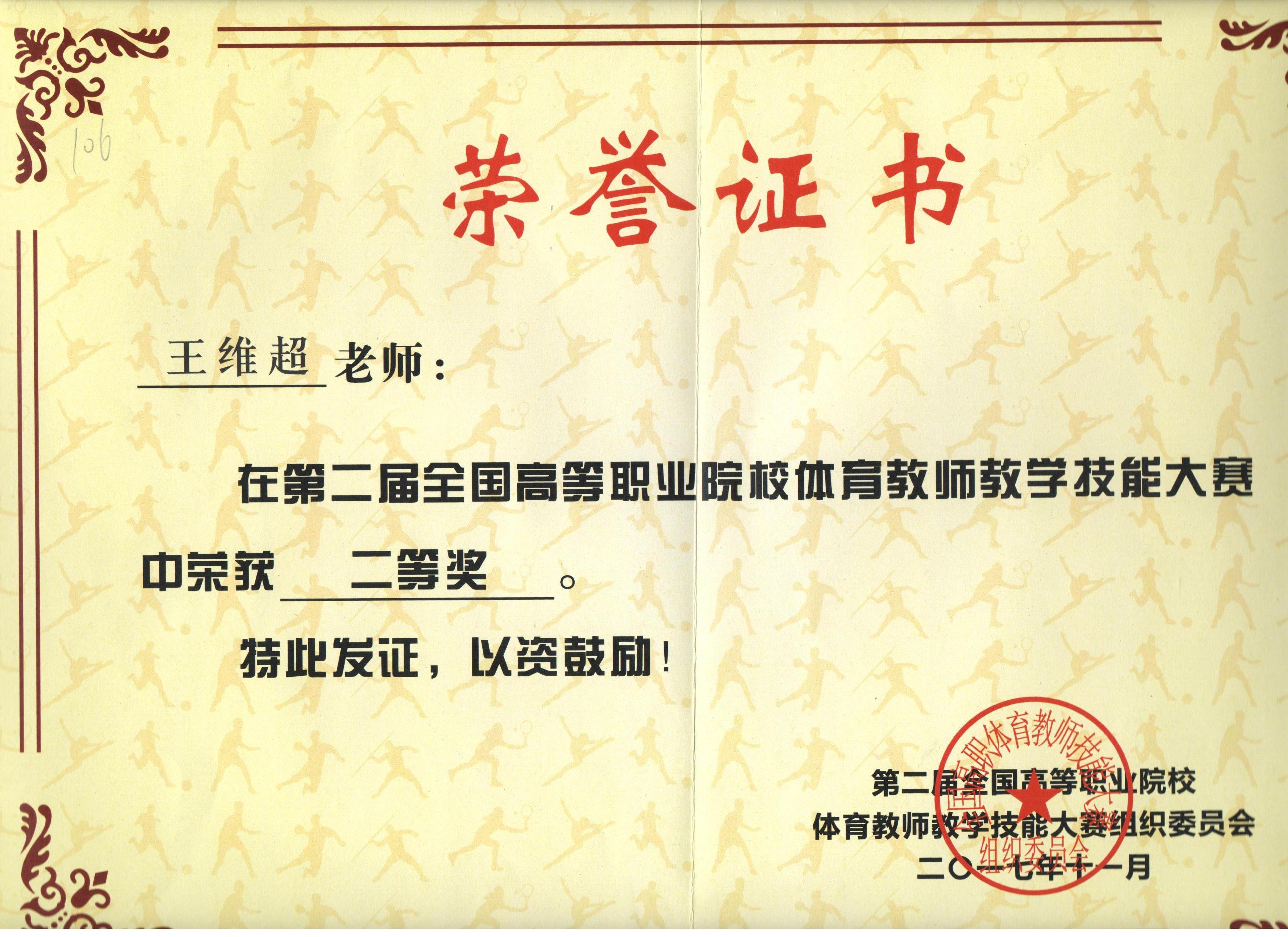 人文藝術(shù)教育系王維超老師在第二屆全國高等職業(yè)院校體育教師技能大賽上獲獎