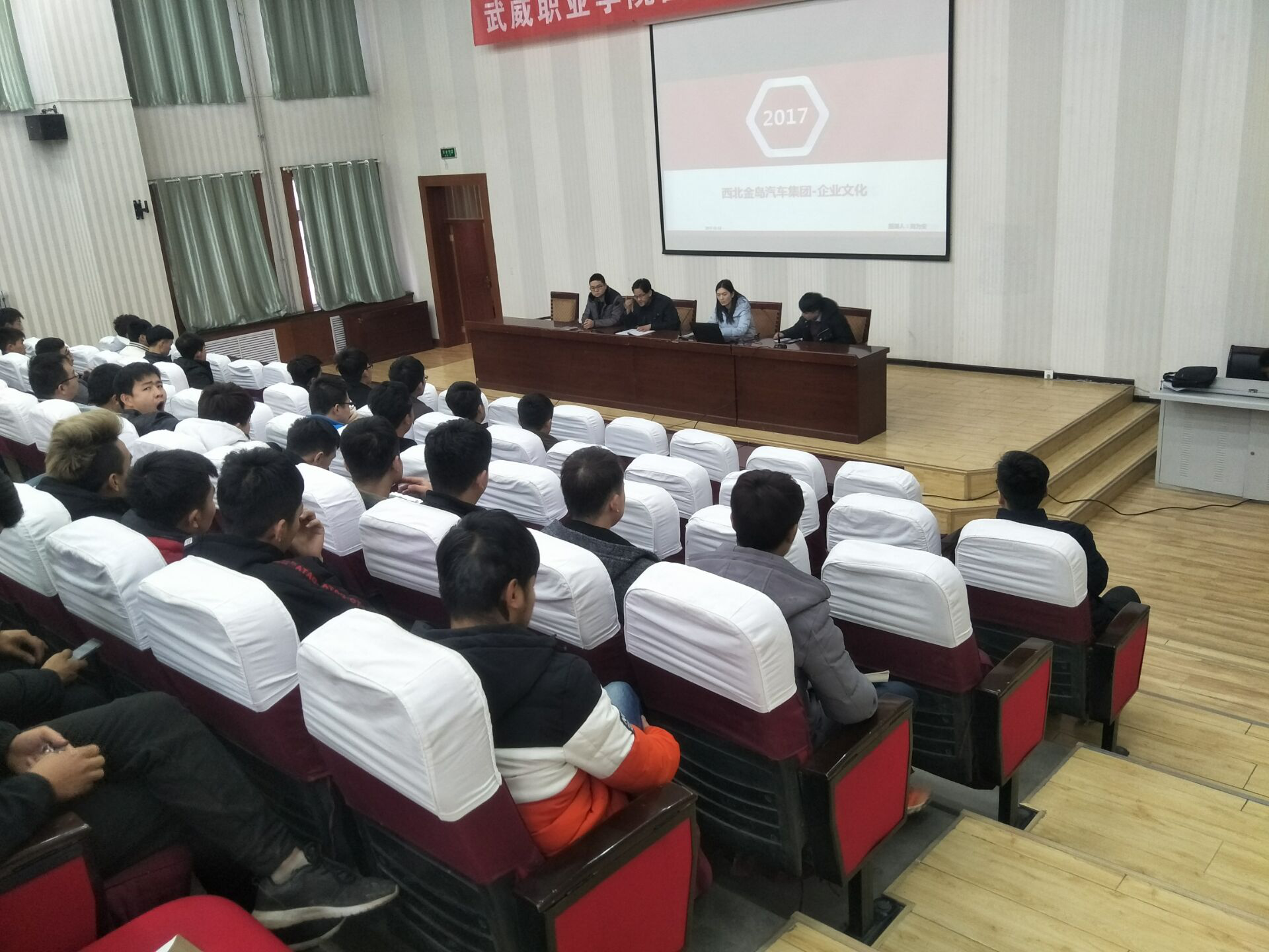 2017年12月12日,在尚德樓正德廳,由金島汽車集團西北金島分公司人事部謝經(jīng)理一行來我系做專場招聘宣講會。招聘會由汽車工程系黨總支書記邸光才主持,中銳教育集團武威項目部經(jīng)理楊鈞及2018屆畢業(yè)生參加了本次宣講會。