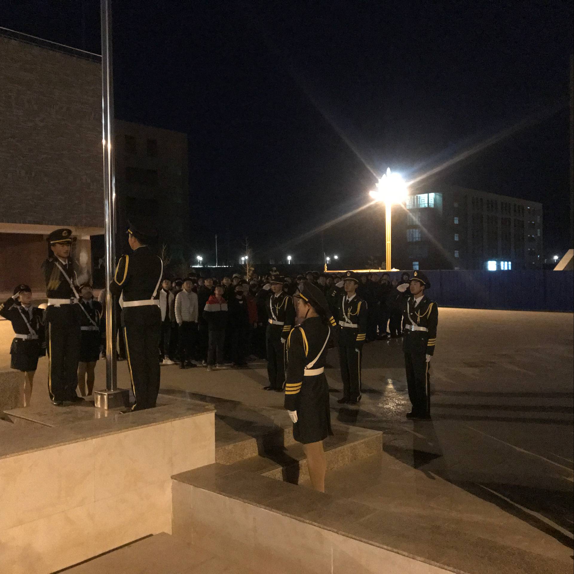 7點(diǎn)20分,護(hù)旗手邁著整齊有力的步伐,護(hù)衛(wèi)著鮮艷的五星紅旗走向了升旗臺。伴隨著莊嚴(yán)的國歌聲,五星紅旗冉冉升起,迎風(fēng)飄揚(yáng)。全體師生莊嚴(yán)肅立,向國旗行注目禮。