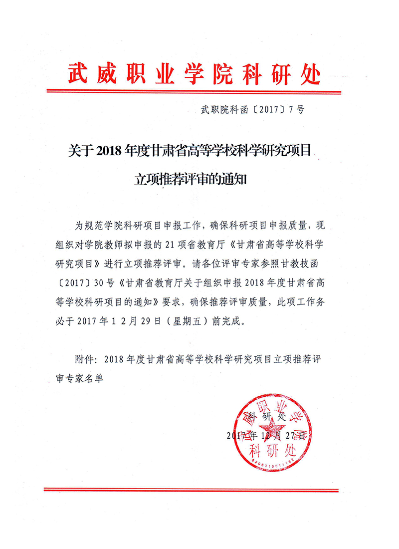 關(guān)于2018年度甘肅省高等學(xué)??茖W(xué)研究項(xiàng)目立項(xiàng)推薦評審的通知