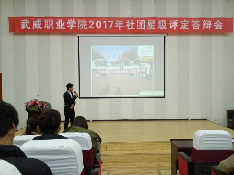 本次星級評定分為初評和終評兩個階段。初評階段,由社團(tuán)聯(lián)合會主席團(tuán)成員和各社團(tuán)負(fù)責(zé)人根據(jù)《武威職業(yè)學(xué)院學(xué)生社團(tuán)星級社團(tuán)評定辦法》,結(jié)合各學(xué)生社團(tuán)上報的活動資料和實(shí)際工作情況進(jìn)行打分評比,根據(jù)評分高低,前10個學(xué)生社團(tuán)入圍星級評定答辯會。答辯會現(xiàn)場,各社團(tuán)通過PPT、視頻等形式展示過去一年里開展的活動和取得的成績,參會人員積極提問互動,形成相互學(xué)習(xí)、相互交流的良好氛圍。