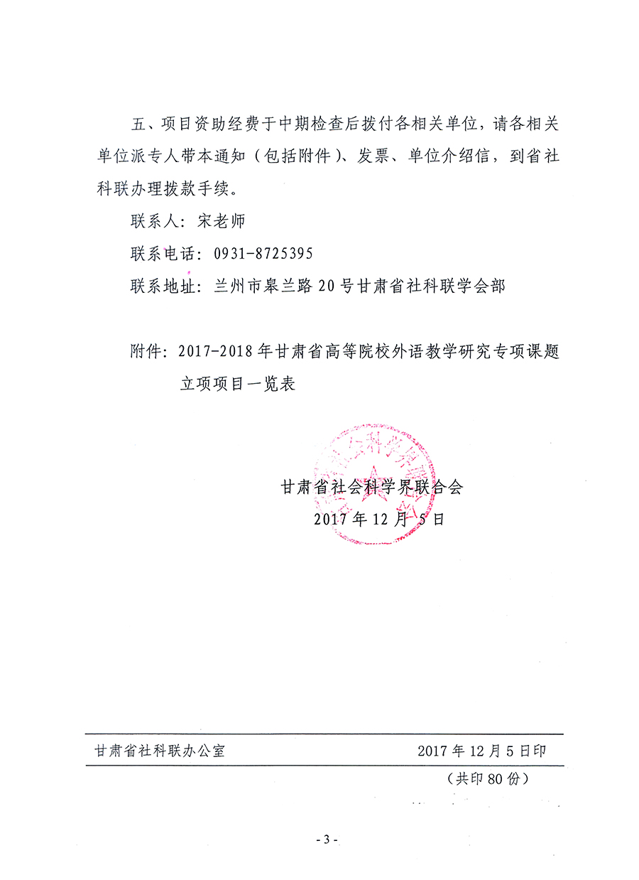 轉發(fā)甘肅省社科聯“關于2017-2018年甘肅省高等院校外語教學研究專項課題立項的通知”