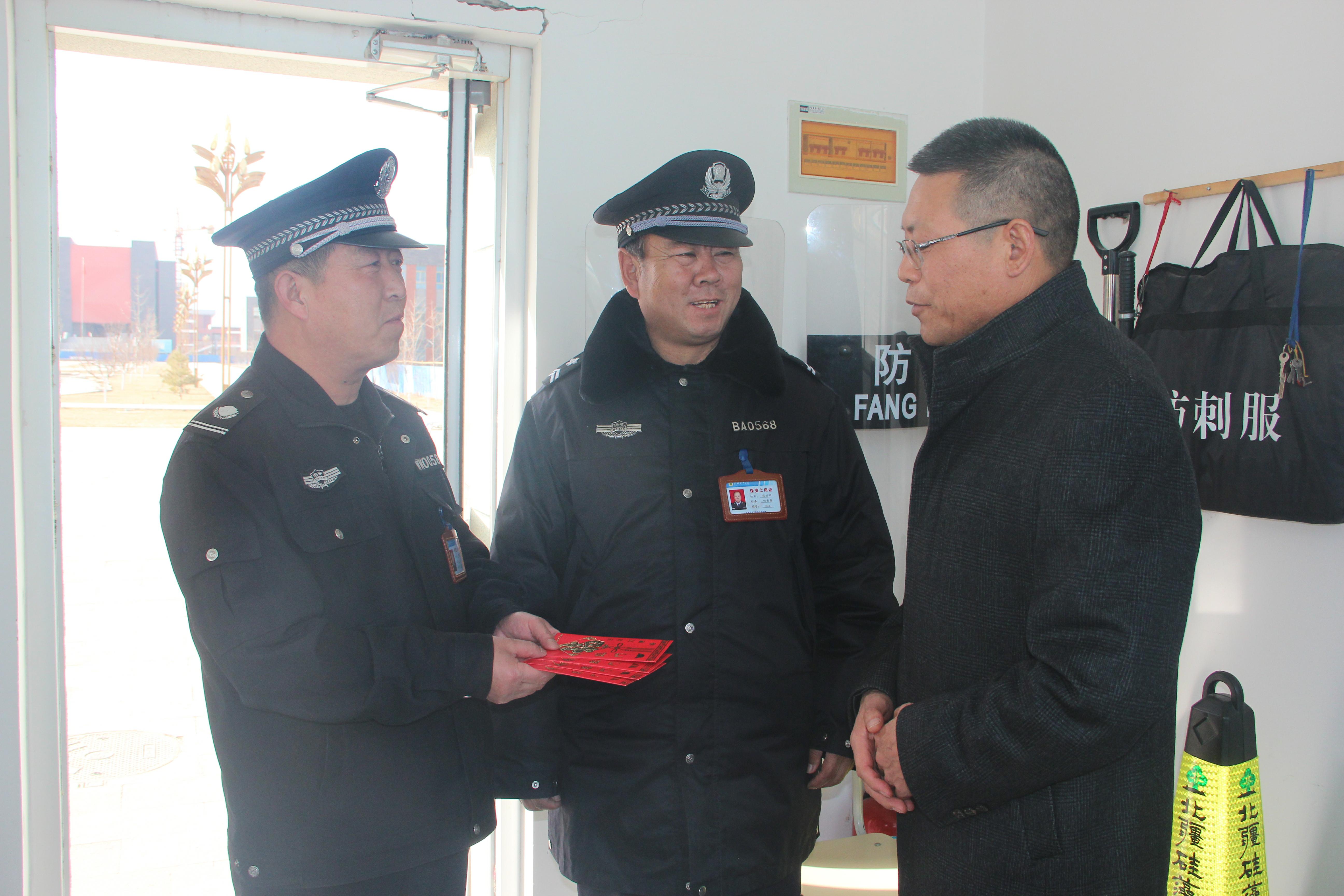 王永緒先后來(lái)到學(xué)院東大門(mén)門(mén)衛(wèi)室、鍋爐房和西小門(mén)門(mén)衛(wèi)室看望工作人員,并送上新春的祝福。王永緒詳細(xì)詢(xún)問(wèn)了假期安保、后勤保障等工作情況,對(duì)他們一年來(lái)的辛勤付出表示衷心的感謝,叮囑他們安排好春節(jié)期間的工作和生活,堅(jiān)守工作崗位,維護(hù)好校園安全穩(wěn)定,確保大家過(guò)一個(gè)平安、喜慶、祥和的春節(jié)。