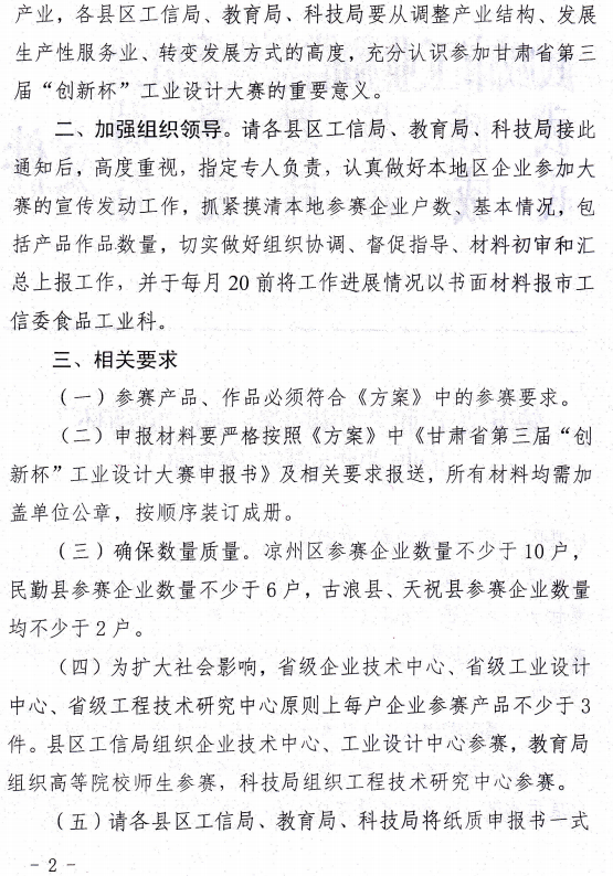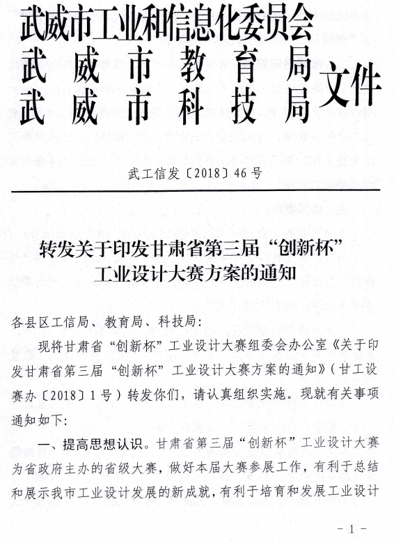 甘肅省“創(chuàng)新杯”工業(yè)設(shè)計(jì)大賽組委會辦公室關(guān)于印發(fā)甘肅省第三屆“創(chuàng)新杯”工業(yè)設(shè)計(jì)大賽方案的通知