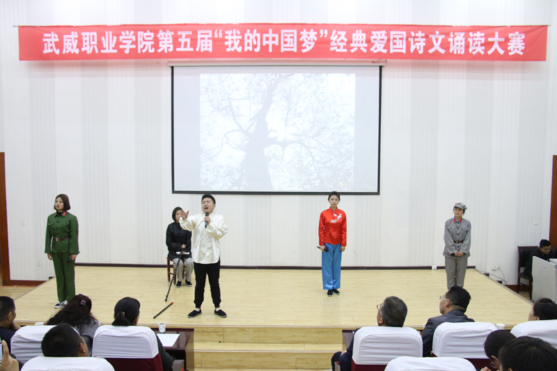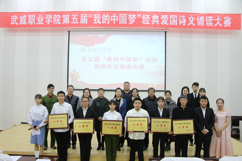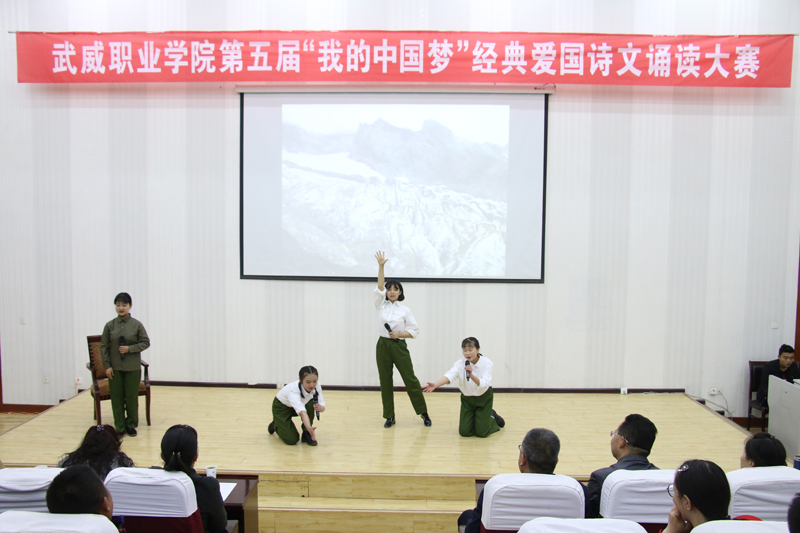 全場比賽以“我的中國夢”為切入點,誦詩抒情、借詞言志,傳承中華民族經(jīng)典愛國詩詞和優(yōu)秀傳統(tǒng)文化,培育與踐行社會主義核心價值觀。各參賽作品融入了歌曲、場景表演等多種藝術(shù)形式,進(jìn)一步激發(fā)了同學(xué)們的愛國熱情和報國之志。經(jīng)過激烈角逐,醫(yī)學(xué)技術(shù)與信息管理系選送的作品《永遠(yuǎn)的格桑梅朵》榮獲一等獎;人文藝術(shù)教育系選送的作品《我的墓碑》、護(hù)理系選送的作品《人民萬歲》榮獲二等獎;現(xiàn)代農(nóng)業(yè)技術(shù)系選送的作品《我的爸爸》、汽車工程系選送的作品《海棠花祭》、建筑工程系選送的作品《中國軍魂》榮獲三等獎。