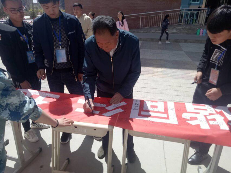 17日中午,在學(xué)院第一食堂、第二食堂門前舉行了“做文明學(xué)生、建文明校園、創(chuàng)文明城市”倡議簽名活動(dòng),近百名師生、群眾在橫幅上簽下了自己的姓名,并表示要用實(shí)際行動(dòng)踐行環(huán)境保護(hù)意識(shí),共建和諧美麗武威。