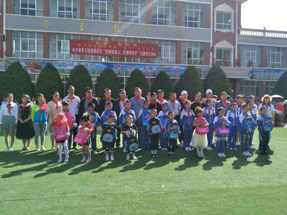 5月31日8點,電子信息工程系黨總支全體黨員和學生入黨積極分子赴涼州區(qū)新華鎮(zhèn)李府小學開展“扶貧獻愛心,真情寄學子”主題黨日活動,為精準扶貧建檔立卡學生送去了學習、生活用品,與孩子們共同度過了一個快樂、祥和的六一國際兒童節(jié)。