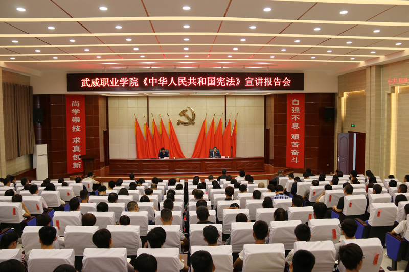 為深入推進(jìn)《中華人民共和國憲法》和《中華人民共和國憲法(修正案)》學(xué)習(xí)宣傳,提高廣大師生“學(xué)習(xí)憲法、尊崇憲法”的自覺性,6月7日,武威職業(yè)學(xué)院組織開展專題宣講活動(dòng),邀請(qǐng)市檢察院檢委會(huì)專職委員郝建宏檢察官來學(xué)院作宣講報(bào)告。學(xué)院領(lǐng)導(dǎo)班子成員,副科級(jí)以上干部及師生代表共220余人參加了宣講報(bào)告會(huì)。報(bào)告會(huì)由黨委副書記趙明主持。