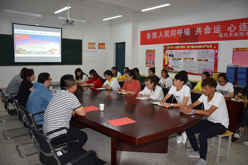 為認(rèn)真貫徹落實(shí)《學(xué)院第15個(gè)民族團(tuán)結(jié)進(jìn)步宣傳月活動(dòng)實(shí)施方案》,6月12日,現(xiàn)代農(nóng)業(yè)技術(shù)系在行樹樓教學(xué)區(qū)309會(huì)議室開展民族團(tuán)結(jié)月系列活動(dòng)。系黨總支書記晏素珍、龔建軍、蔡飛老師及全系少數(shù)民族學(xué)生參加會(huì)議,會(huì)議由系輔導(dǎo)員蔡海老師主持。
