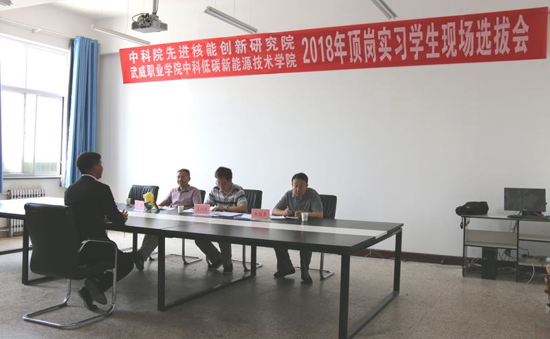 2018年6月21日,中國科學(xué)院先進核能創(chuàng)新研究院在學(xué)院舉行了2018年頂崗實習(xí)學(xué)生現(xiàn)場選撥會,由中科院先進核能創(chuàng)新研究院綜合管理部常務(wù)副主任王納秀、熔鹽機械部熱工組組長王曉和中科武威新能源研究所所長朱智勇組成的專家組對能源類專業(yè)和機械類專業(yè)學(xué)生進行了現(xiàn)場面試,遴選出的14名同學(xué)將于7月份前往中國科學(xué)院先進核能創(chuàng)新研究院進行為期一年的專業(yè)頂崗實習(xí),他們將在中科院先進核能創(chuàng)新研究院專家教授的帶領(lǐng)下,通過一對一指導(dǎo)和崗位輪訓(xùn)等形式全面系統(tǒng)完成頂崗實習(xí),了解行業(yè)技術(shù)需求和技術(shù)最新進展,掌握更多的專業(yè)知識和實踐技能,感受頂級科研院所深厚的科技氛圍和文化氛圍,全面提升專業(yè)水平和綜合素養(yǎng),為成功走向社會奠定良好的基礎(chǔ)。