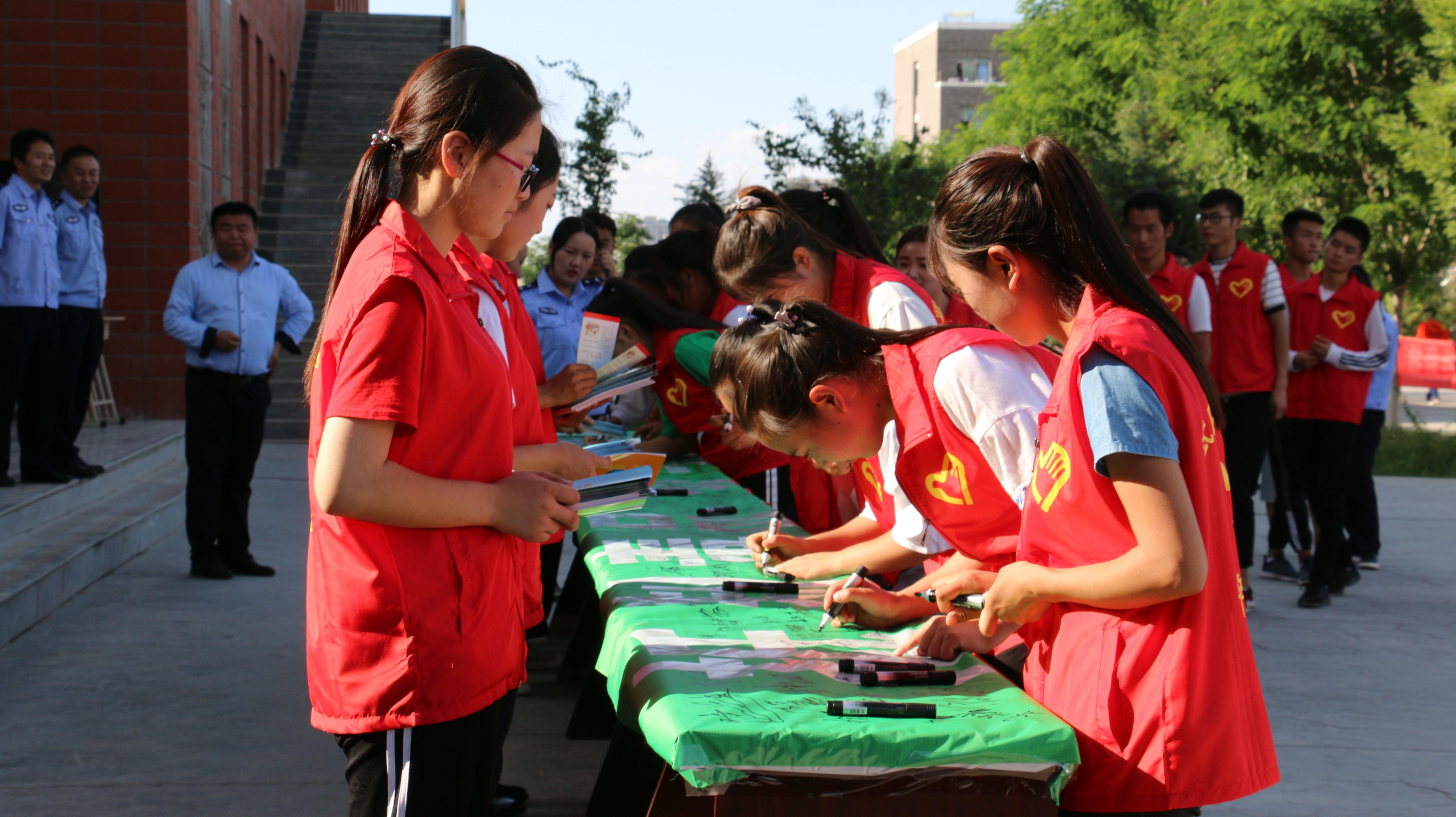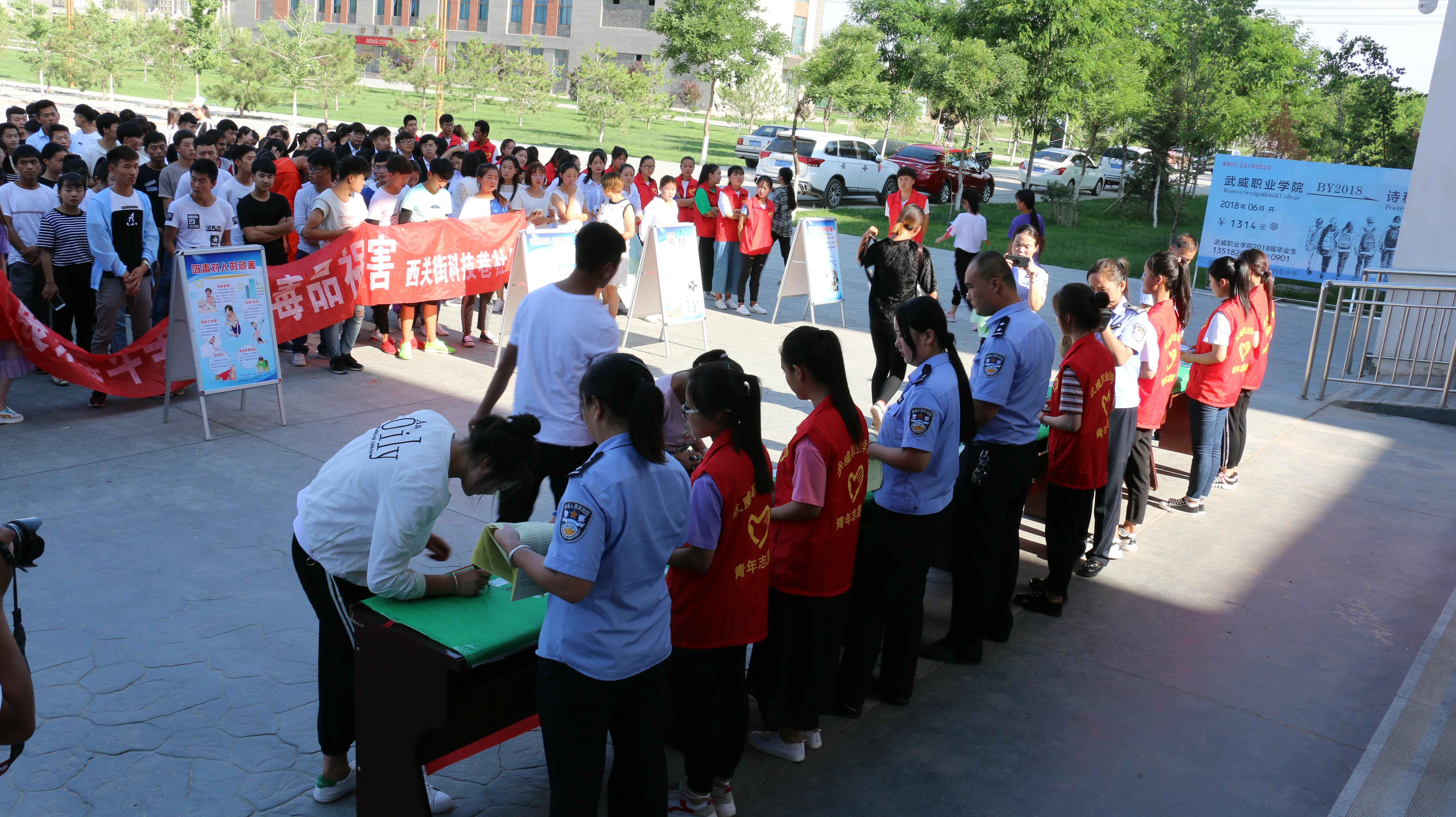 宣傳活動(dòng)以“健康人生.綠色無(wú)毒”為主題,通過(guò)禁毒志愿者代表宣讀禁毒倡議書,不涉毒承諾簽名活動(dòng)、發(fā)放宣傳資料、展示禁毒宣傳展板等形式,讓廣大青年學(xué)生更深刻地認(rèn)識(shí)到“毒品”這一社會(huì)公害給個(gè)人、家庭、社會(huì)帶來(lái)的危害,旨在提高廣大青年學(xué)生識(shí)毒、防毒、拒毒意識(shí)和參與禁毒人民戰(zhàn)爭(zhēng)的積極性。