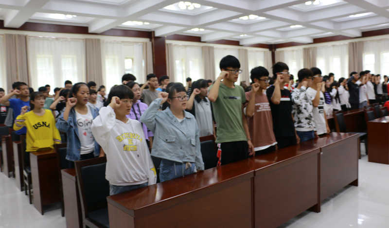 最后,2018級光伏材料班李飛虎同學(xué)作為新生代表發(fā)言。他滿懷憧憬,表達(dá)了同學(xué)們對大學(xué)生活的期待和勤奮求知的決心,并帶領(lǐng)全體新生進(jìn)行了入學(xué)宣誓。