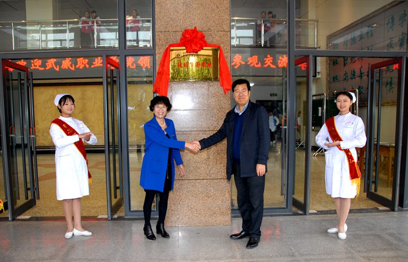 10月21日在天水市衛(wèi)生學(xué)校,潘玉華和天水衛(wèi)校校長毛如君為“武威職業(yè)學(xué)院優(yōu)質(zhì)生源基地”揭牌,天水衛(wèi)校校領(lǐng)導(dǎo)班子成員和相關(guān)處室負(fù)責(zé)人參加了揭牌儀式。之后毛如君介紹了學(xué)校發(fā)展情況和校園整體規(guī)劃,并陪同潘玉華一行參觀了學(xué)校的教學(xué)樓、實驗實訓(xùn)樓、學(xué)生公寓、學(xué)生食堂等教學(xué)設(shè)施和生活環(huán)境。