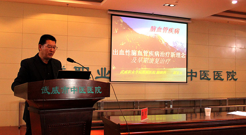 為提高醫(yī)務(wù)人員對(duì)于腦病(腦卒中)的診療和康復(fù)訓(xùn)練水平,推進(jìn)醫(yī)院腦卒中中心的籌備建設(shè),學(xué)院附屬醫(yī)院于11月11日上午,在內(nèi)科七樓會(huì)議室舉辦甘肅省中醫(yī)藥繼續(xù)醫(yī)學(xué)教育項(xiàng)目:腦病診療康復(fù)培訓(xùn)班。醫(yī)院副院長(zhǎng)宗武山主持培訓(xùn)班開(kāi)班儀式,副院長(zhǎng)毛照海致辭歡迎蘭大二院2位神經(jīng)內(nèi)科專(zhuān)家講學(xué)指導(dǎo)工作。醫(yī)院各科室二百余名醫(yī)療骨干參加腦病診療康復(fù)培訓(xùn)班,聆聽(tīng)學(xué)術(shù)報(bào)告。