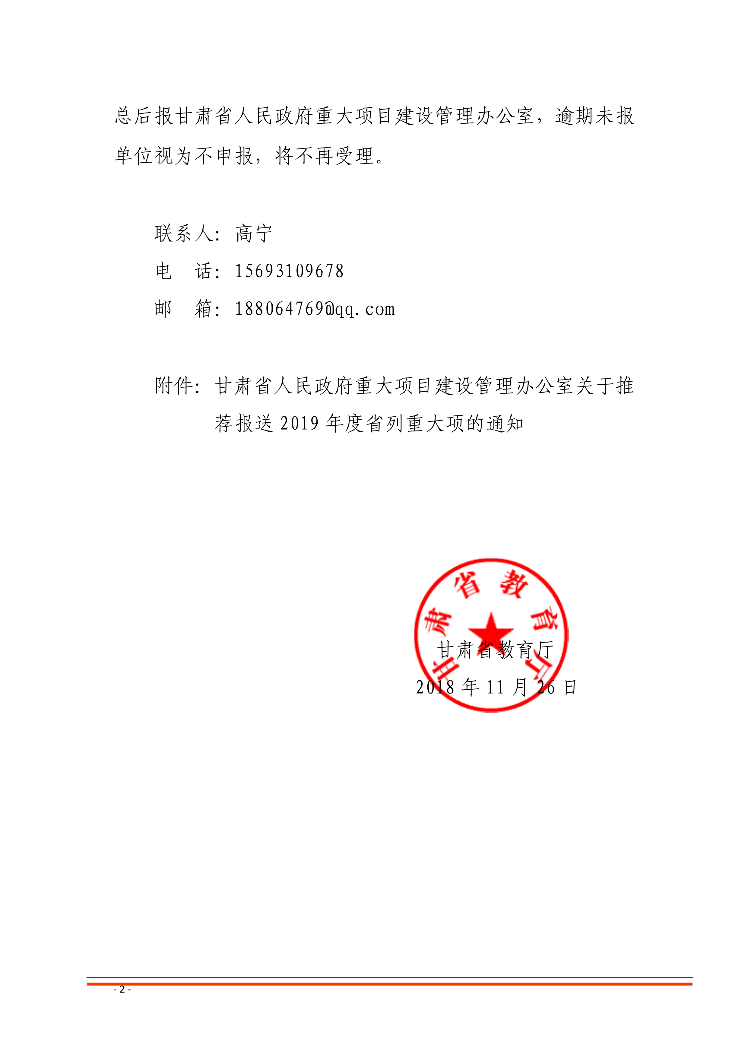 附件:甘肅省人民政府重大項目建設管理辦公室關于推?薦報送 2019 年度省列重大項的通知
