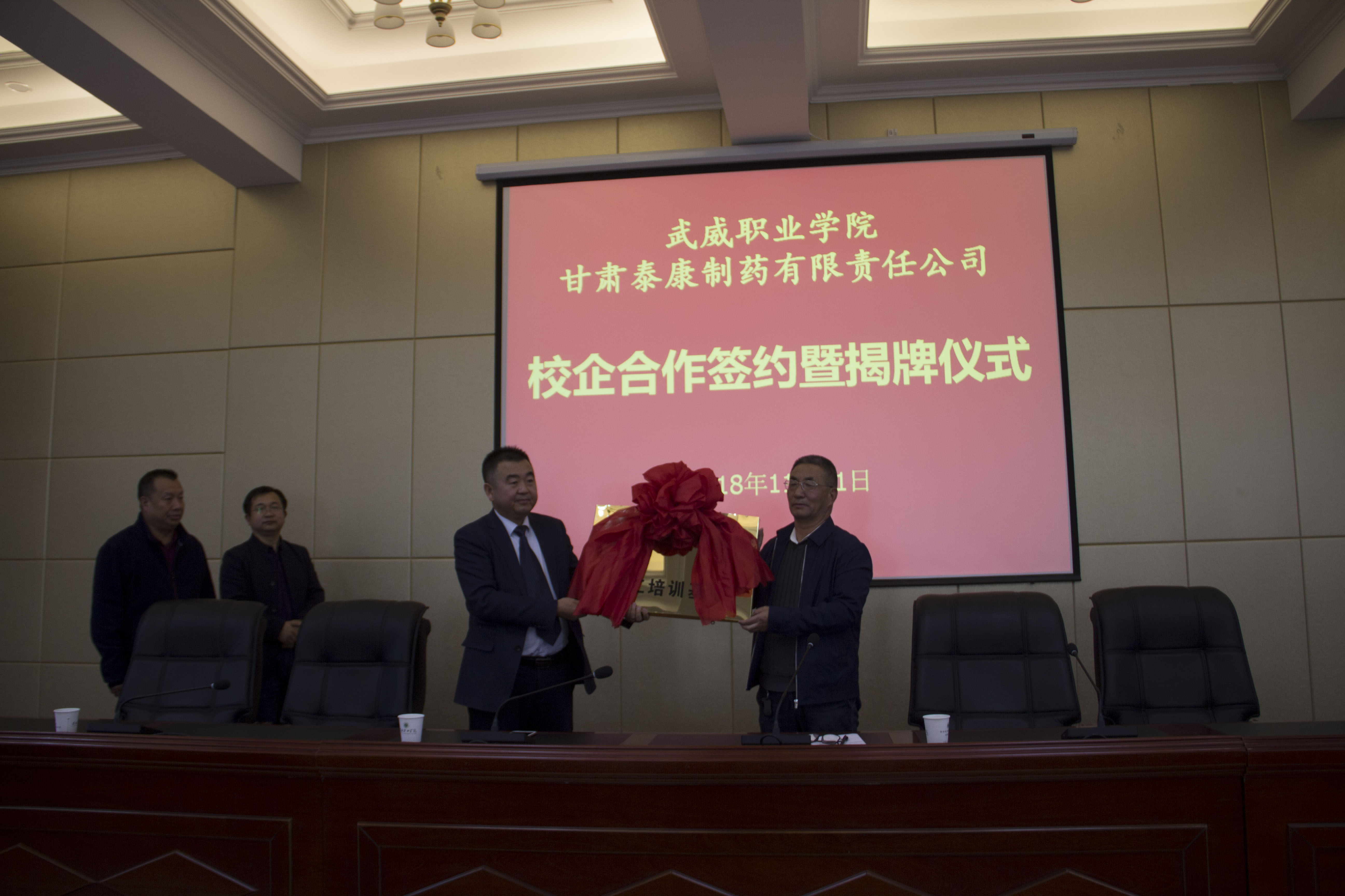 為提高人才培養(yǎng)質(zhì)量和辦學水平,加強校企協(xié)同育人機制建設(shè),11月1日下午,藥學系與甘肅泰康制藥有限責任公司校企合作共建“就業(yè)實習基地”簽約揭牌儀式在行樹樓北側(cè)會議室隆重舉行。甘肅泰康制藥有限責任公司投資方—北京久朝集團產(chǎn)業(yè)中心總監(jiān)楊宏超、公司總工程師毛著鴻、財務(wù)總監(jiān)郝敏等企業(yè)領(lǐng)導出席本次儀式。學院教務(wù)處處長仲生仁、招生就業(yè)處處長蔡柱山、藥學系主任魏潤明、副主任楊建美、黨總支副書記單光年及藥學系160余名師生參加了此次簽約揭牌儀式。儀式由魏潤明主持。