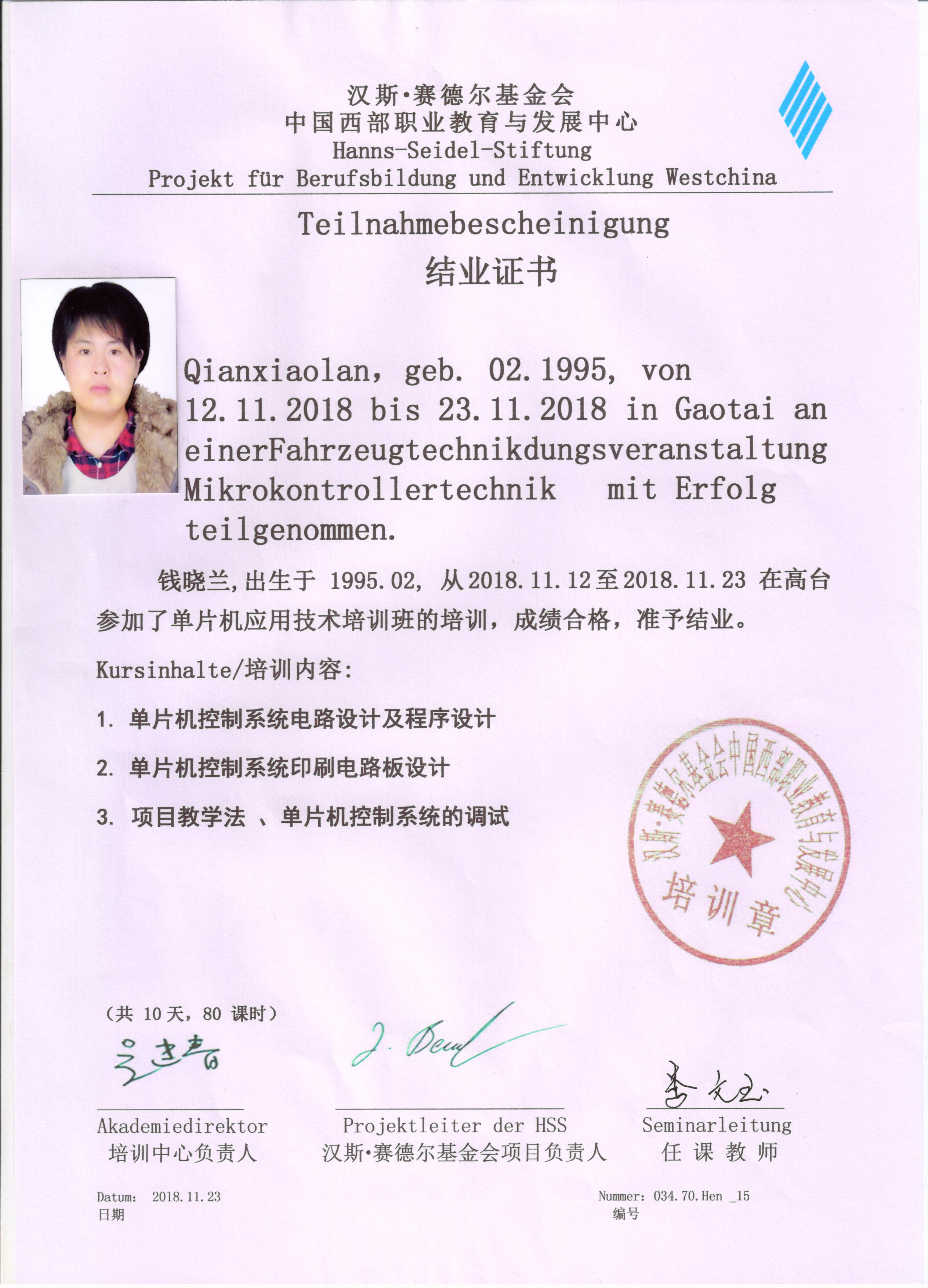 參加德國漢斯?賽德爾基金會職業(yè)院校2018年秋季培訓