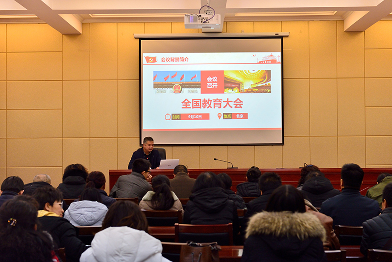 學(xué)工處處長王守云主講。他以“學(xué)為人師 行為世范 爭做‘四有’老師”為題學(xué)習(xí)了全國教育大會召開的背景、重大意義以及習(xí)近平總書記關(guān)于教育的重要論述。宣講會指出,全國教育大會是黨中央在中國特色社會主義進(jìn)入新時代、全面建成小康社會進(jìn)入決勝階段召開的一次劃時代、歷史性會議,時機(jī)好、規(guī)格高、影響大,在我國教育發(fā)展史上具有重要里程碑意義;習(xí)近平總書記深刻總結(jié)了黨的十八大以來我國教育事業(yè)發(fā)展取得的顯著成就,對當(dāng)前和今后一個時期教育工作作出重大部署,為加快推進(jìn)教育現(xiàn)代化、建設(shè)教育強(qiáng)國、辦好人民滿意的教育指明了前進(jìn)方向、提供了根本遵循。