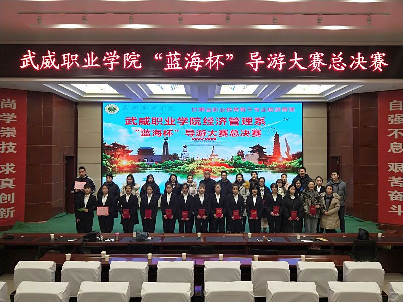 2018年12月28日,武威職業(yè)學(xué)院經(jīng)濟(jì)管理系“藍(lán)海杯“導(dǎo)游大賽決賽在大學(xué)生活動(dòng)中心“菁英廳”圓滿落幕。此次活動(dòng)是甘肅省職業(yè)教育骨干專業(yè)旅游管理專業(yè)建設(shè)活動(dòng)之一。