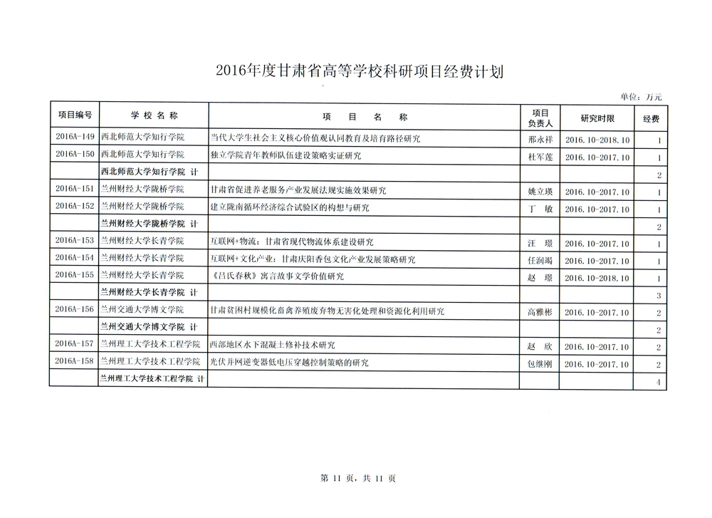 轉發(fā)甘肅省財政廳 教育廳文件 關于下達2016年度高校導師科研經費和“2011計劃”補助經費的通知