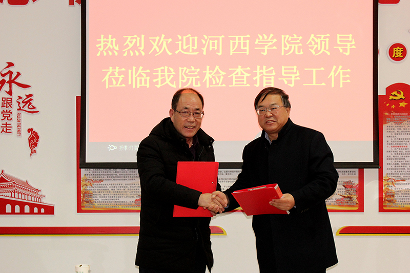 張勇在即席講話中對河西學院醫(yī)學院的基本情況作了介紹,并代表學校對武威職業(yè)學院和學院附屬中醫(yī)醫(yī)院支持發(fā)展該校醫(yī)學本科教育,表示衷心感謝。他希望河西學院與武威職業(yè)學院和學院附屬中醫(yī)醫(yī)院今后像走親戚一樣常來常往,互通有無。特別是能夠在醫(yī)學專業(yè)發(fā)展和能力提升等方面雙方都能取得長足進步。