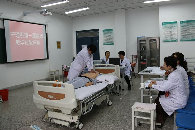 為提高教師的教學(xué)水平及實踐操作技能,促進(jìn)教師間相互學(xué)習(xí)交流,本著“以賽促學(xué),以賽促教,以賽強技”的宗旨,11月25日,護理系開展教師教學(xué)競賽,來自護理系的23位教師參加了本次比賽。教務(wù)處、直屬附屬醫(yī)院及護理系的專家擔(dān)任比賽評委。本次教學(xué)技能競賽分課堂教學(xué)和實踐教學(xué)技能兩種形式,其中,實踐競賽項目包括心肺復(fù)蘇技術(shù)、前臂骨折固定包扎技術(shù)、心電監(jiān)護操作、靜脈輸液、無菌操作、鋪備用床等六項內(nèi)容。