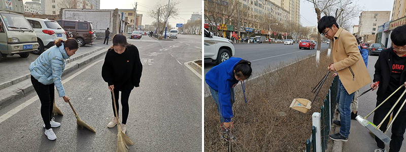 本次活動主要是對學(xué)院周邊街道進(jìn)行清掃,努力為城市民眾營造干凈、整潔、舒適的生活環(huán)境。30多名志愿者手持垃圾袋,將果皮、紙屑、塑料袋、煙蒂、礦泉水瓶等垃圾撿起放入垃圾袋,青年志愿者們分散在街道邊開展清掃垃圾活動。每位志愿者都熱情高漲,他們不怕臟,不怕累,認(rèn)真地把垃圾撿拾干凈,形成一道獨特的風(fēng)景。路上遇見居民,他們還向居民講解保護(hù)環(huán)境的重要性,倡議要愛護(hù)我們美麗的家園,為大家創(chuàng)造一個良好的生活環(huán)境。