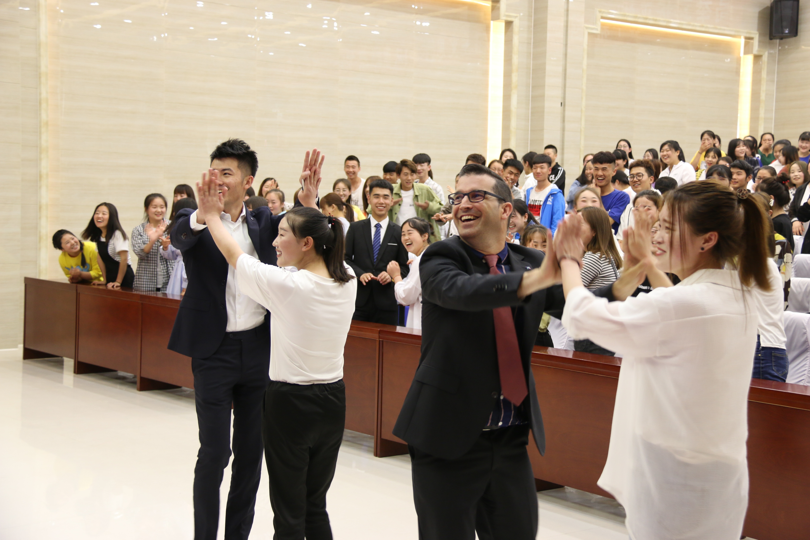西班牙客人還到菁英廳參加了學(xué)院組織的學(xué)生見面會。Contreras 先生和同學(xué)們進(jìn)行了語言、歌曲、舞蹈雙向互動,讓在場所有同學(xué)體驗了濃烈的西班牙異域文化,同學(xué)們近距離感受了西班牙客人的熱情奔放、幽默詼諧。Contreras 先生對學(xué)院學(xué)生的積極主動、大膽參與互動留下了深刻印象。護(hù)理系、人文藝術(shù)教育系、能源工程系、電子信息工程系等系學(xué)生代表參加活動。
