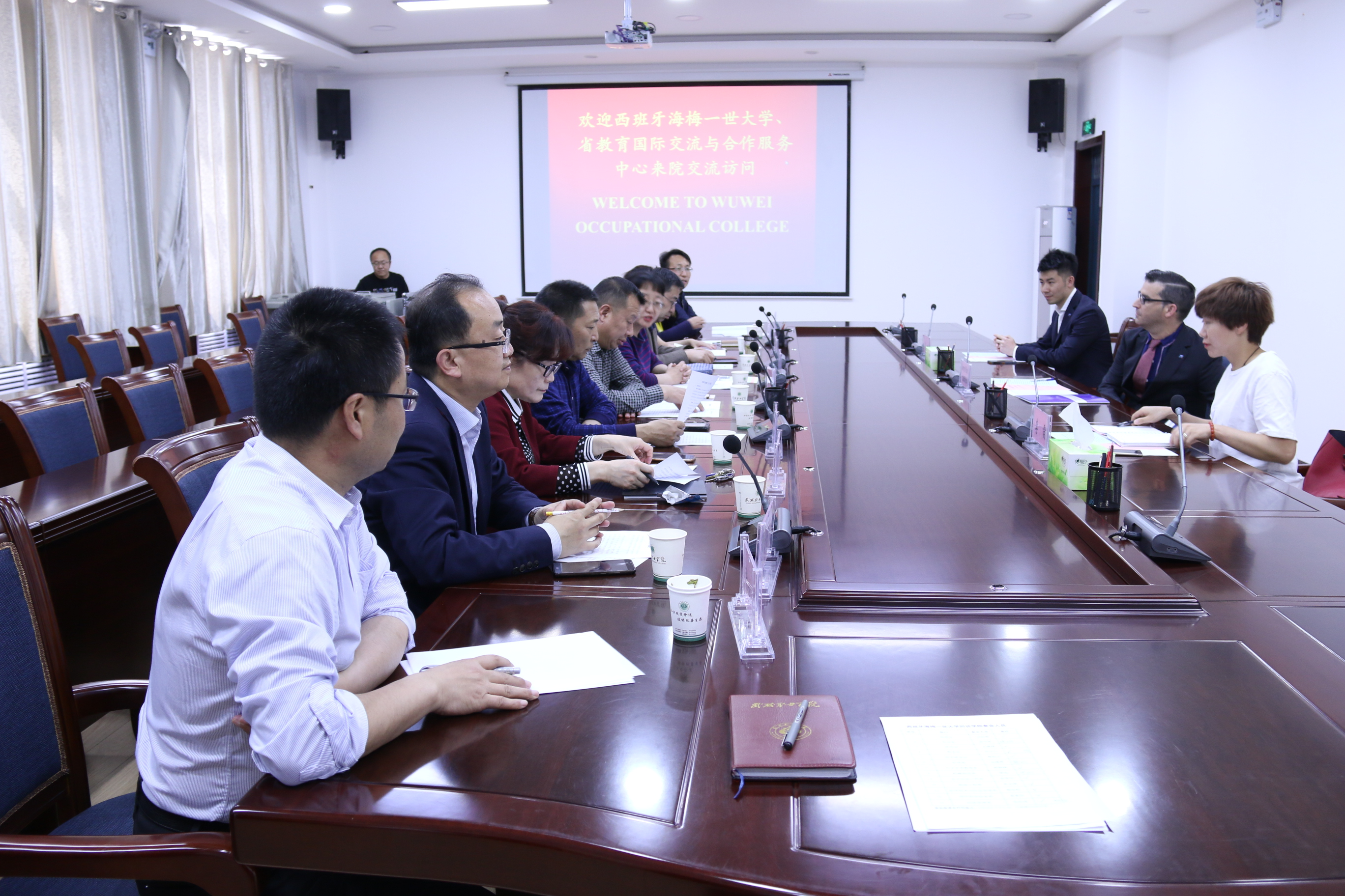座談會上,田迎春代表全院師生對海梅一世大學(xué)回訪學(xué)院表示歡迎,對海梅一世大學(xué)時隔一年再次訪問學(xué)院表示敬佩,對省國際交流與合作服務(wù)中心對學(xué)院的關(guān)心表示感謝,并向來訪客人簡要介紹了學(xué)院建設(shè)發(fā)展情況、學(xué)科專業(yè)設(shè)置、學(xué)院國際交流與合作開展情況。來訪客人對學(xué)院友好熱情的工作安排表示感謝,對學(xué)院積極致力于開展國際合作與交流的努力和遠(yuǎn)見表示贊賞。賓主雙方通過PPT展示、VIDEO播放等形式介紹了各自基本情況,雙方共同希望能夠采取切實可行的舉措,進(jìn)一步深化務(wù)實合作,落實兩校簽署的合作框架協(xié)議。賓主雙方還就校際交流、師資互訪、語言培訓(xùn)、赴西班牙專升碩留學(xué)項目等共同關(guān)心的問題進(jìn)行了深入交流。