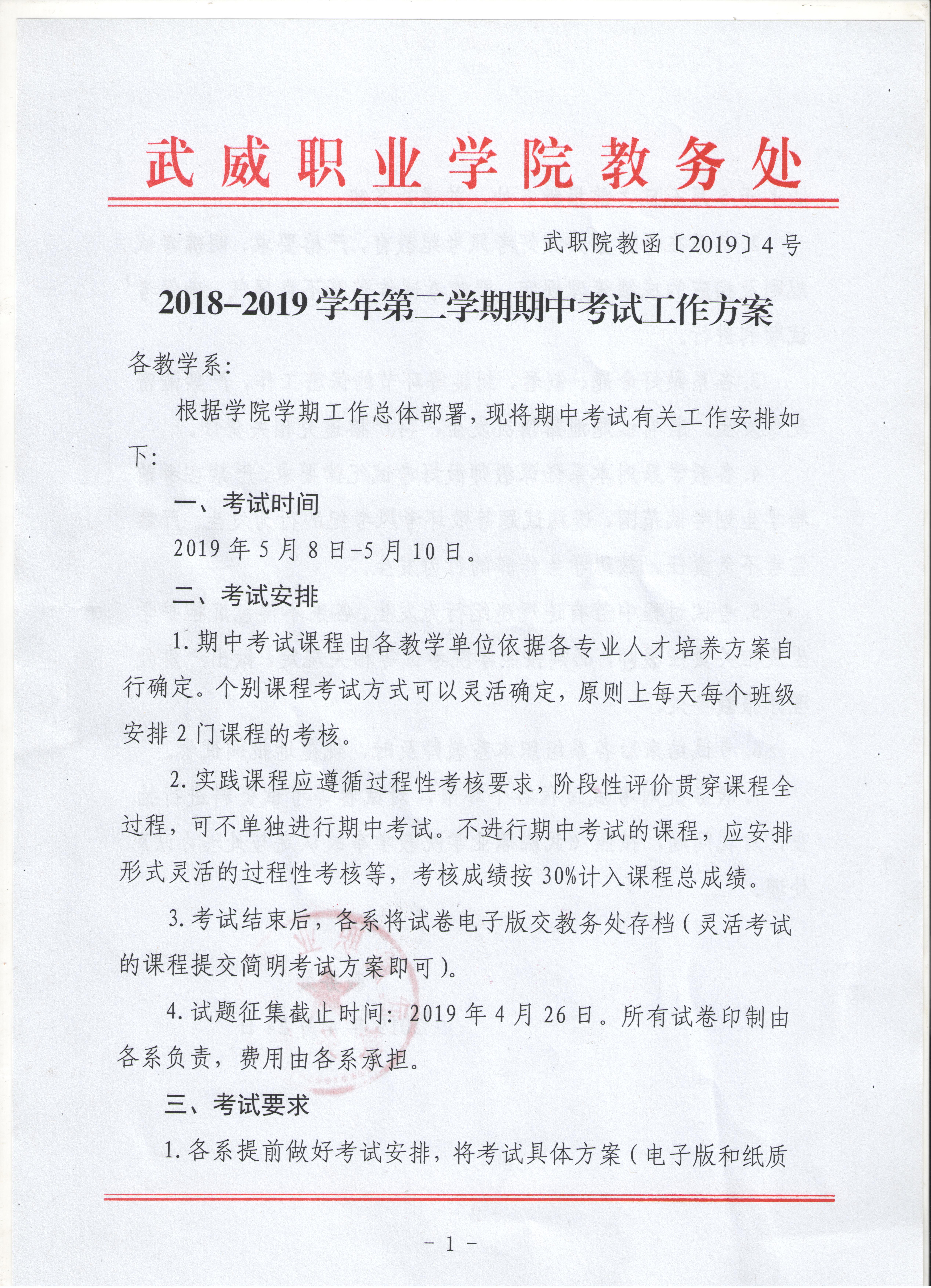 汽車工程系2018-2019學年第二學期期中考試工作方案