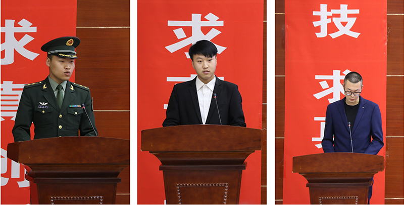在啟動儀式上,現(xiàn)役軍人代表31666部隊防化營防化二連排長唐功財、學(xué)院退役大學(xué)生代表李乾和入伍意愿大學(xué)生代表李宏飛進行了發(fā)言,講出了各自的感想和感受。