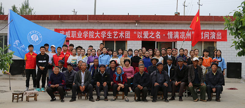 活動之前,同學(xué)們?yōu)榫蠢显旱睦先藗冑浰土宋繂柶?,走訪了附近村民,邀請他們一起觀看節(jié)目,并發(fā)放了學(xué)院招生宣傳手冊,介紹學(xué)院發(fā)展情況。演出現(xiàn)場,精彩紛呈的節(jié)目博得了父老鄉(xiāng)親們熱烈不斷的掌聲,演出在全體演員的合唱《同一首歌》的歌聲中結(jié)束。
