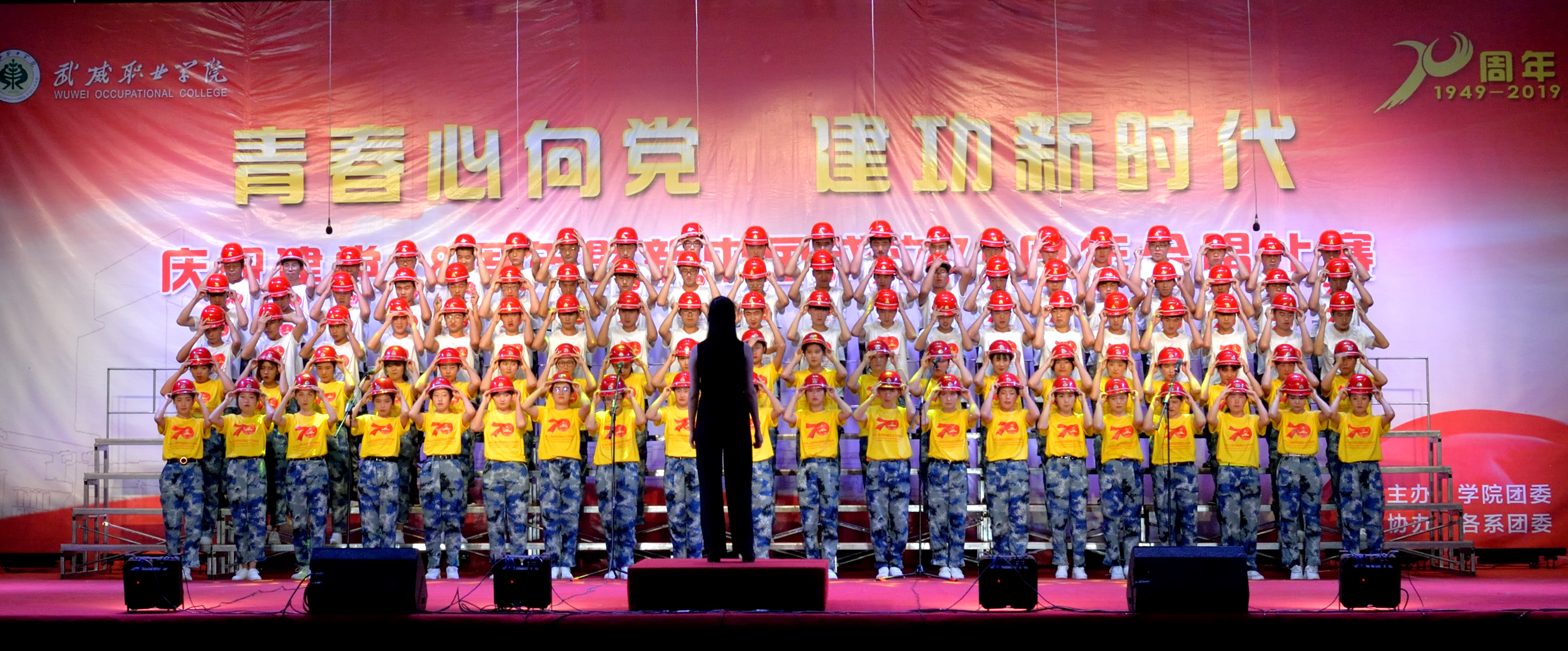 比賽開始前,人文藝術(shù)教育系演唱了原創(chuàng)曲目《追夢八步沙》,用歌聲禮贊六老漢不畏艱苦、建設(shè)生態(tài)家園的奮斗精神。比賽現(xiàn)場精彩紛呈,高潮迭起,11支參賽隊、千余師生用歌聲盡情抒發(fā)了熱愛黨、熱愛祖國的情懷,一首首激蕩人心的歌曲掀起了一陣陣愛國熱浪,激起了現(xiàn)場觀眾的愛國情懷,共鳴之聲在校園久久回蕩。比賽結(jié)束后,大學(xué)生藝術(shù)團(tuán)選送的舞蹈《西路軍魂》帶領(lǐng)同學(xué)們一同重溫了西路軍西征的悲壯歷史。