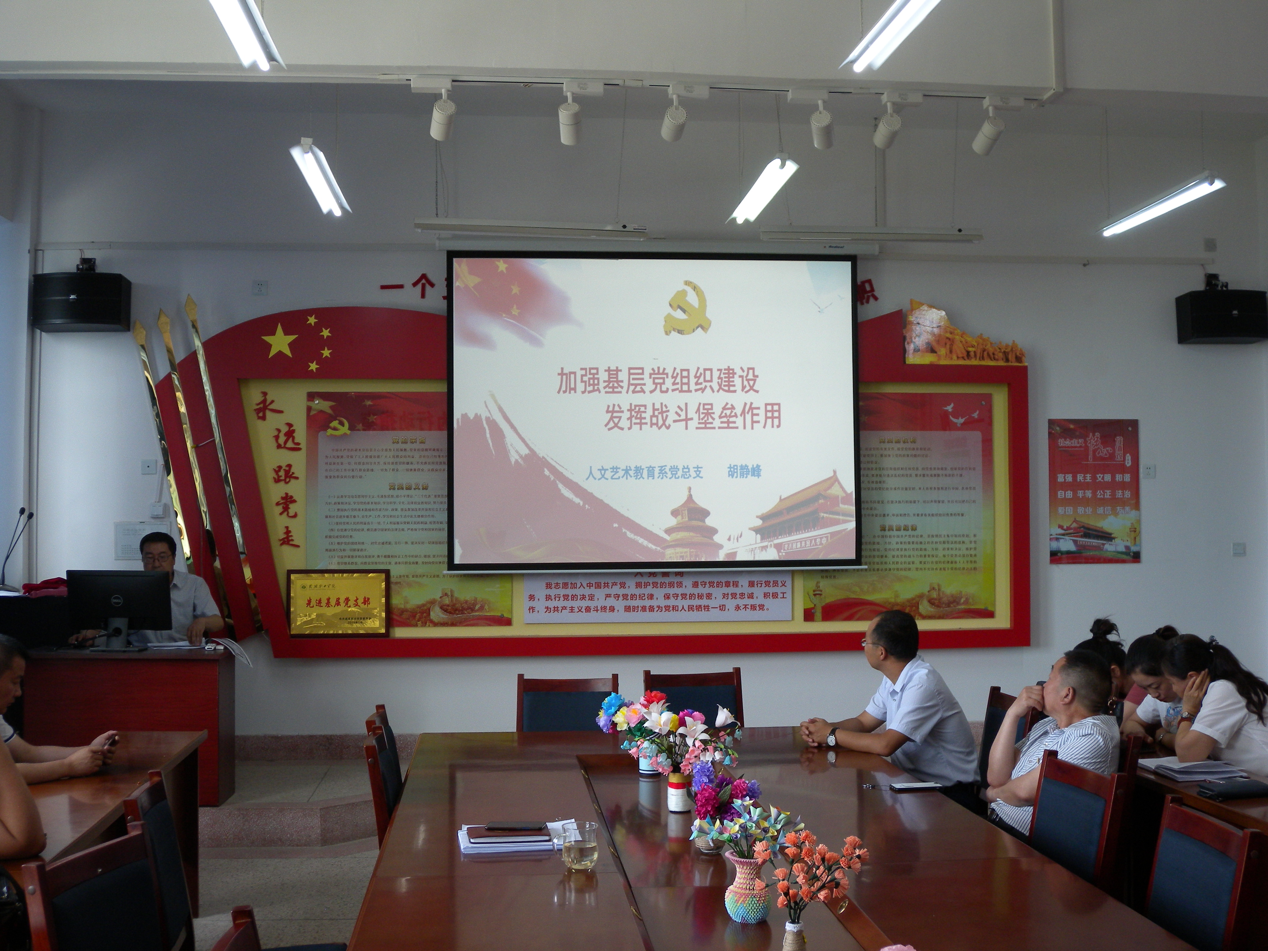 為慶祝中國共產(chǎn)黨建黨98周年,進(jìn)一步凝聚黨員力量,振奮黨員精神,更好地發(fā)揮黨員先鋒模范作用,7月1日下午,人文藝術(shù)教育系黨總支開展了書記講黨課活動(dòng),系黨總支全體黨員、預(yù)備黨員參加了活動(dòng)。
