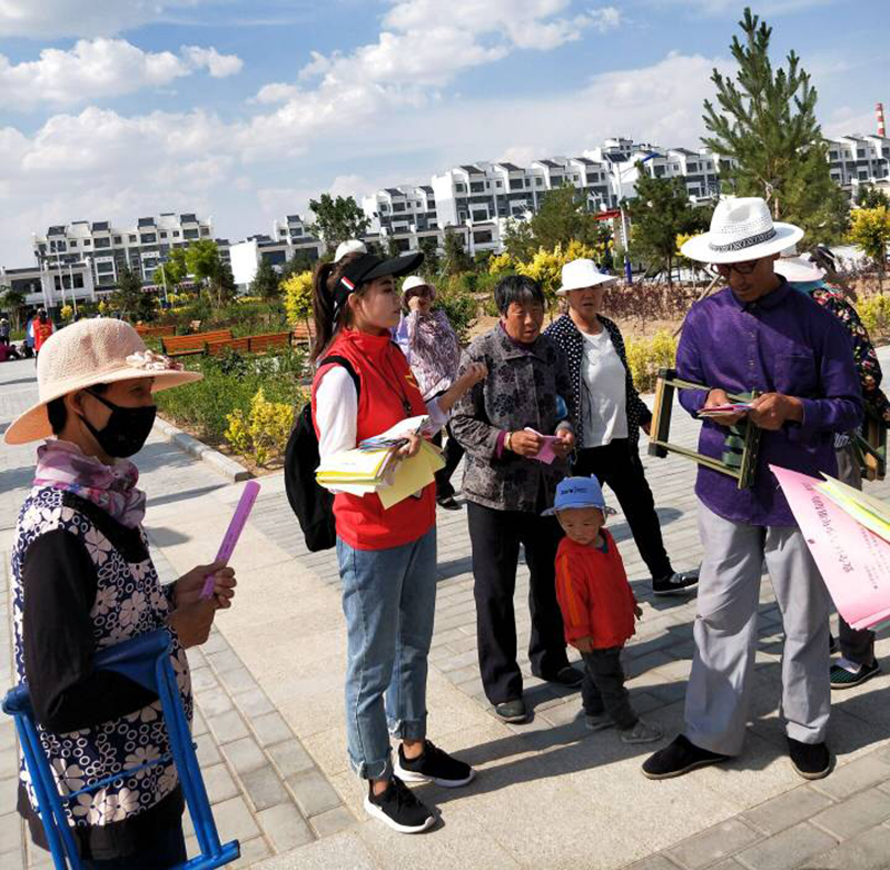 7月11日開(kāi)始, 6名志愿者在指導(dǎo)老師的帶領(lǐng)下分別進(jìn)入倉(cāng)巷社區(qū)銀城花園、天馬湖公園、古浪縣綠洲移民點(diǎn)、永豐鎮(zhèn)、發(fā)放鎮(zhèn)、天馬社區(qū)、清源鎮(zhèn)幸福家園社區(qū)、金沙社區(qū)、福利路社區(qū)、古城鎮(zhèn)祁山村、武南鎮(zhèn)、清水鎮(zhèn)等地開(kāi)展了宣講實(shí)踐活動(dòng)。通過(guò)擺放展板、實(shí)地講解、發(fā)放禁毒防艾宣傳材料、問(wèn)卷調(diào)查、個(gè)案訪談、資料收集等方式,深入了解實(shí)踐地禁毒防艾最新形勢(shì)、相關(guān)工作開(kāi)展情況、存在的實(shí)際問(wèn)題。