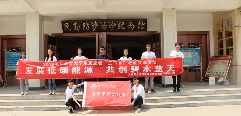 為貫徹習近平總書記“確保民勤不成為第二個羅布泊”的重要指示精神,調(diào)研我市民勤縣防沙治沙現(xiàn)狀。2019年7月13日,武威職業(yè)學院美麗中國實踐團前往民勤防沙治沙紀念館、民勤治沙綜合試驗站參觀調(diào)研。