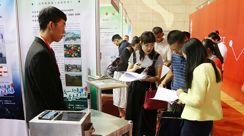 我院5件作品接受了評審專家的質(zhì)詢答辯,6件科技發(fā)明類作品參加了現(xiàn)場展示,獲得觀摩師生的關(guān)注和贊許。參會領(lǐng)導(dǎo)和評審專家在我院展臺前看演示、聽解說,親切詢問我院學(xué)生參與科技創(chuàng)新、創(chuàng)業(yè)活動的情況。