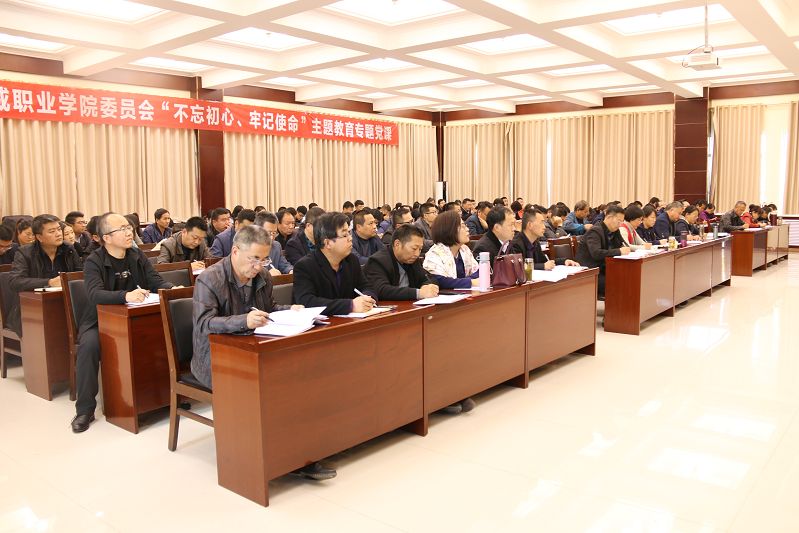 趙明最后強調(diào),學(xué)院將緊緊圍繞為黨育人、為國育才,突出黨的政治建設(shè),引導(dǎo)廣大黨員干部和教職員工,緊扣立德樹人的根本任務(wù),按照中央和省委要求,把學(xué)習(xí)教育、調(diào)查研究、檢視問題、整改落實貫穿主題教育始終。站在新的歷史起點上,讓我們緊密團結(jié)在以習(xí)近平同志為核心的黨中央周圍,高舉習(xí)近平新時代中國特色社會主義思想偉大旗幟,不忘初心、牢記使命、繼續(xù)前進,以黨建為統(tǒng)領(lǐng),緊緊圍繞高等職業(yè)教育發(fā)展目標要求,強化責(zé)任擔(dān)當,以實際行動主動承擔(dān)起學(xué)院事業(yè)發(fā)展的光榮使命,全身心投入到爭創(chuàng)中國特色高水平高職院校的任務(wù)中來,以勇于攻艱克難的決心和勇氣,強化奮進擔(dān)當?shù)木衩婷玻鲃悠平庵萍s學(xué)院事業(yè)發(fā)展的瓶頸問題,敢于碰硬、擔(dān)當作為,奮力開創(chuàng)學(xué)院各項事業(yè)發(fā)展新局面!