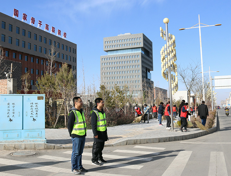 為認(rèn)真落實(shí)全市創(chuàng)城工作推進(jìn)會會議精神,提升全國文明城市創(chuàng)建工作水平,建設(shè)人民滿意的幸福城市,在市委市政府及創(chuàng)城辦的統(tǒng)一安排下,11月15日下午,在學(xué)院副院長王守云、張開禮的帶領(lǐng)下,我院100多名黨員干部組成的志愿者服務(wù)隊(duì),集中在我院的劃定區(qū)域,進(jìn)行常態(tài)化的文明交通勸導(dǎo)和環(huán)境衛(wèi)生整治活動。