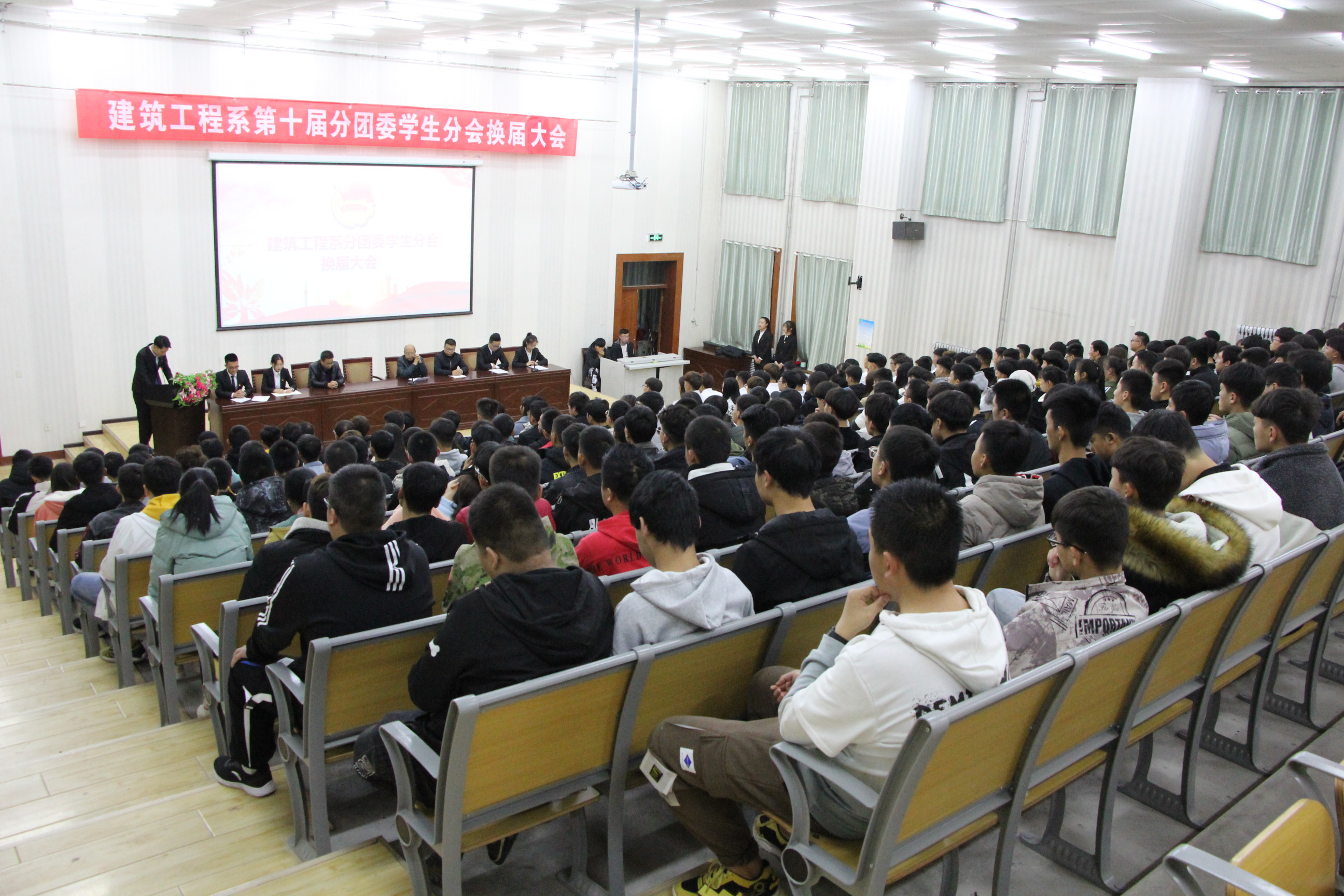 11月21日,建筑工程系在學院正德廳召開第十屆團學委員會換屆大會,系領導、教師及學生代表200余人參加了會議。
