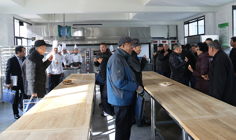 會議結(jié)束后,院領(lǐng)導(dǎo)與老同志們參觀了學(xué)院經(jīng)濟管理系烹飪實訓(xùn)中心,詳細了解了學(xué)院實訓(xùn)室的建設(shè)發(fā)展情況,并與在場實習(xí)的學(xué)生親切交談,并在現(xiàn)場品嘗了學(xué)生親手制作的中西面點,離退休黨員們盛贊了烹飪教師的專業(yè)水平和同學(xué)們的動手實踐能力。他們一致表示,要永葆革命初心,堅定理想信念,深入學(xué)習(xí)貫徹習(xí)近平新時代中國特色社會主義思想,牢記共產(chǎn)黨員的責(zé)任與使命,關(guān)注學(xué)院發(fā)展并做好“關(guān)心下一代”工作,為學(xué)院的建設(shè)和發(fā)展獻言獻策。