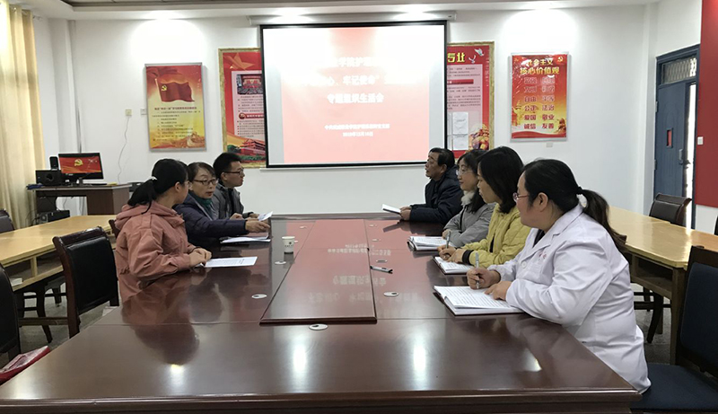 根據學院《關于基層黨組織召開“不忘初心、牢記使命”專題組織生活會和開展民主評議黨員的通知》要求,12月9日下午,護理系教師黨支部和學生黨支部分別在明遠樓103、224教室召開了“不忘初心、牢記使命”專題組織生活會,全體黨員以及入黨積極分子參加會議。