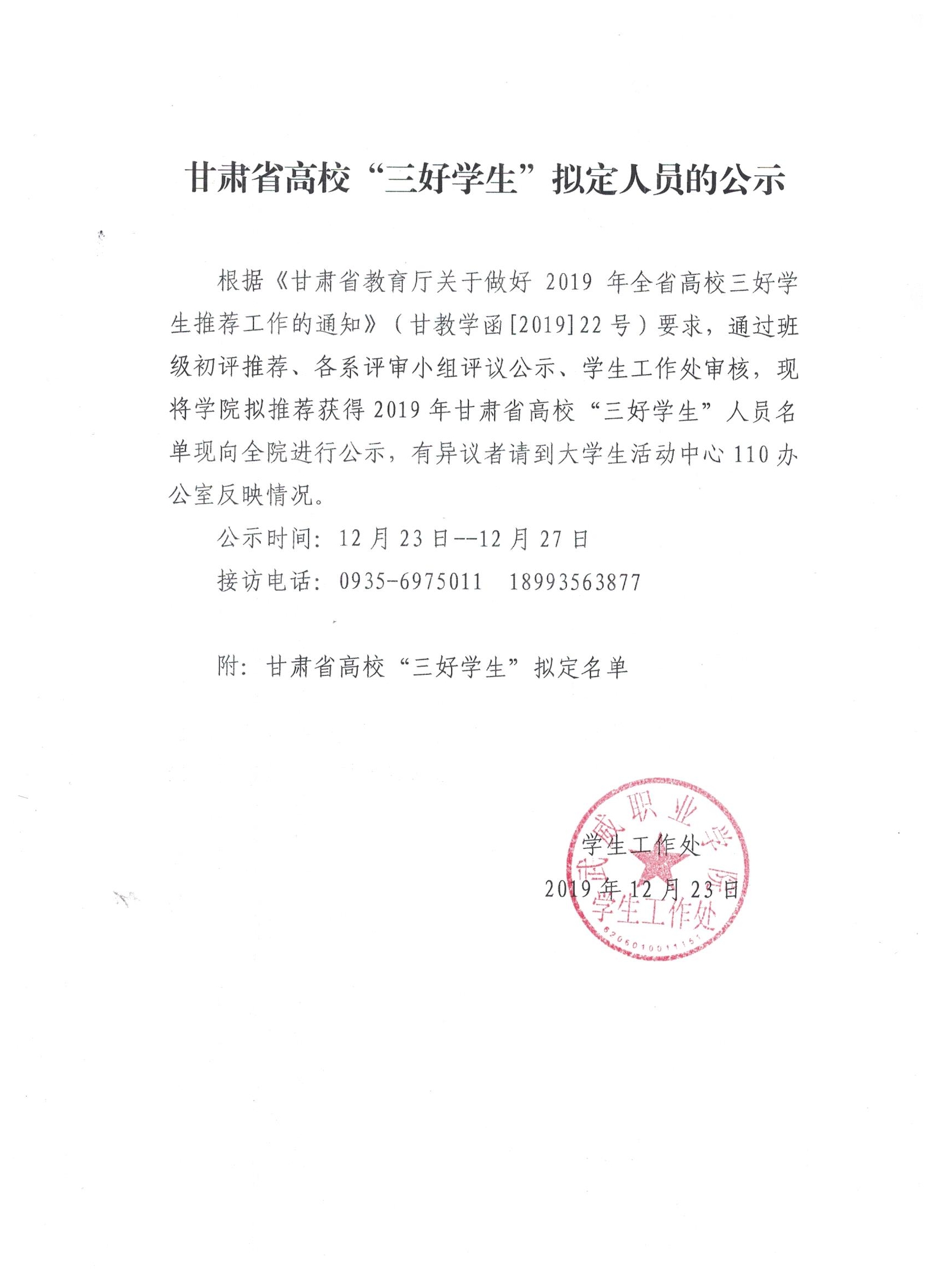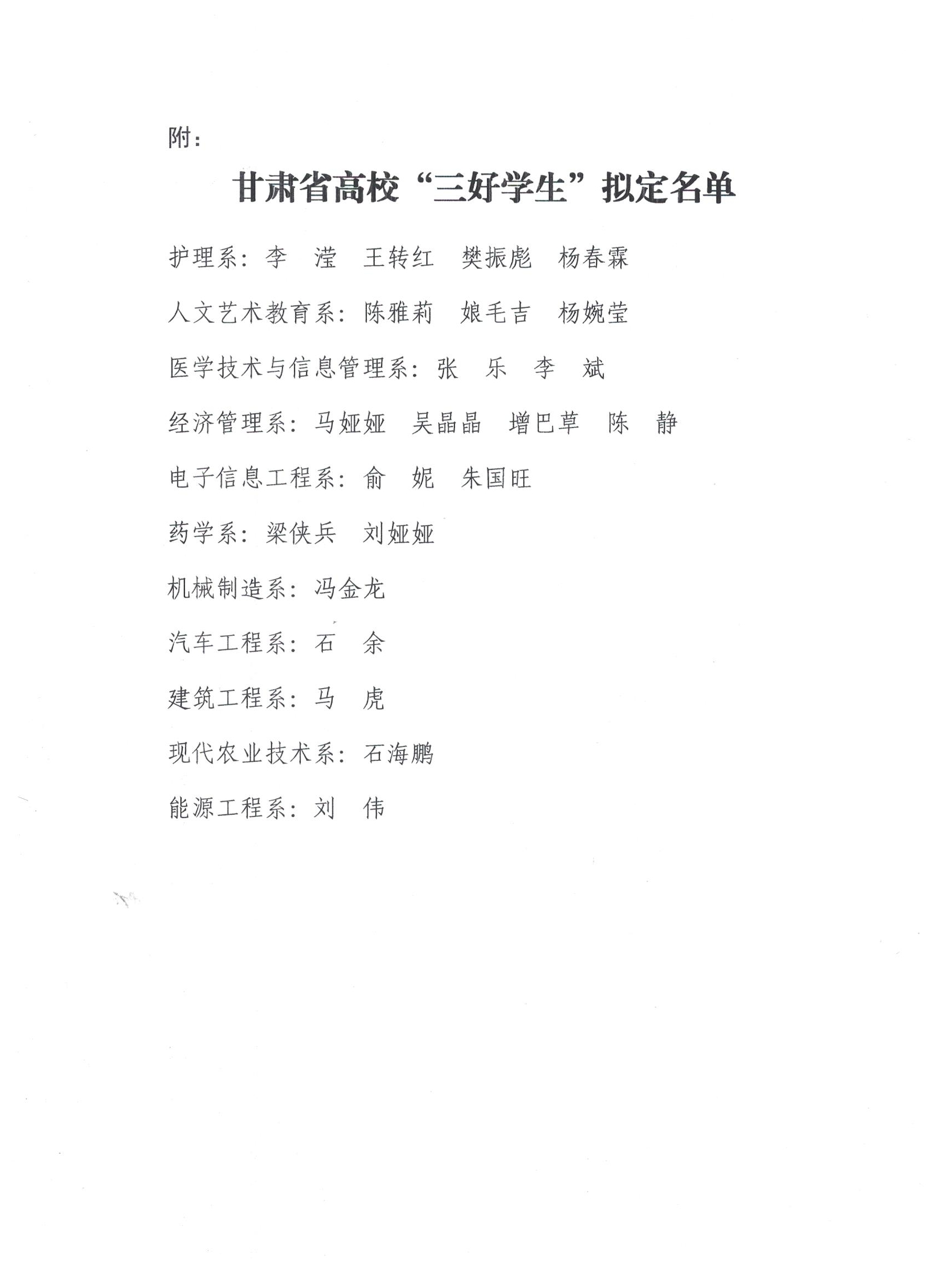 甘肅省高?!叭脤W(xué)生”擬定人員的公示