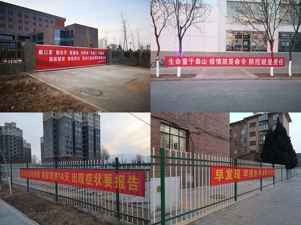 學(xué)院面向師生和社會(huì)人員,加強(qiáng)疫情防控內(nèi)外宣傳。在校園圍墻醒目位置設(shè)置內(nèi)容為:“戴口罩、勤洗手、常通風(fēng)、拒野味、不串門、不聚會(huì)”,“聯(lián)防聯(lián)控、群防群治、堅(jiān)決打贏疫情防控阻擊戰(zhàn)”等宣傳標(biāo)語;在校園內(nèi)、家屬區(qū)等地顯著位置設(shè)置:“生命重于泰山、疫情就是命令、防控就是責(zé)任”,“重科學(xué)、聽官宣、不信謠、不傳謠”,“疫點(diǎn)返鄉(xiāng)回到家、居家觀察14天、出現(xiàn)癥狀要報(bào)告”,“早發(fā)現(xiàn)、早報(bào)告、早診斷、早治療”等宣傳標(biāo)語、橫幅。通過線上線下、校內(nèi)校外全方位教育、宣傳、號(hào)召、引導(dǎo),營(yíng)造了師生和社會(huì)人員高度重視、科學(xué)嚴(yán)謹(jǐn)、從我做起、同舟共濟(jì)嚴(yán)格防控疫情的濃厚氛圍和戰(zhàn)勝疫情的堅(jiān)定信心,為早日打贏疫情防控戰(zhàn)凝聚了共識(shí)、匯聚了強(qiáng)大的精神力量。