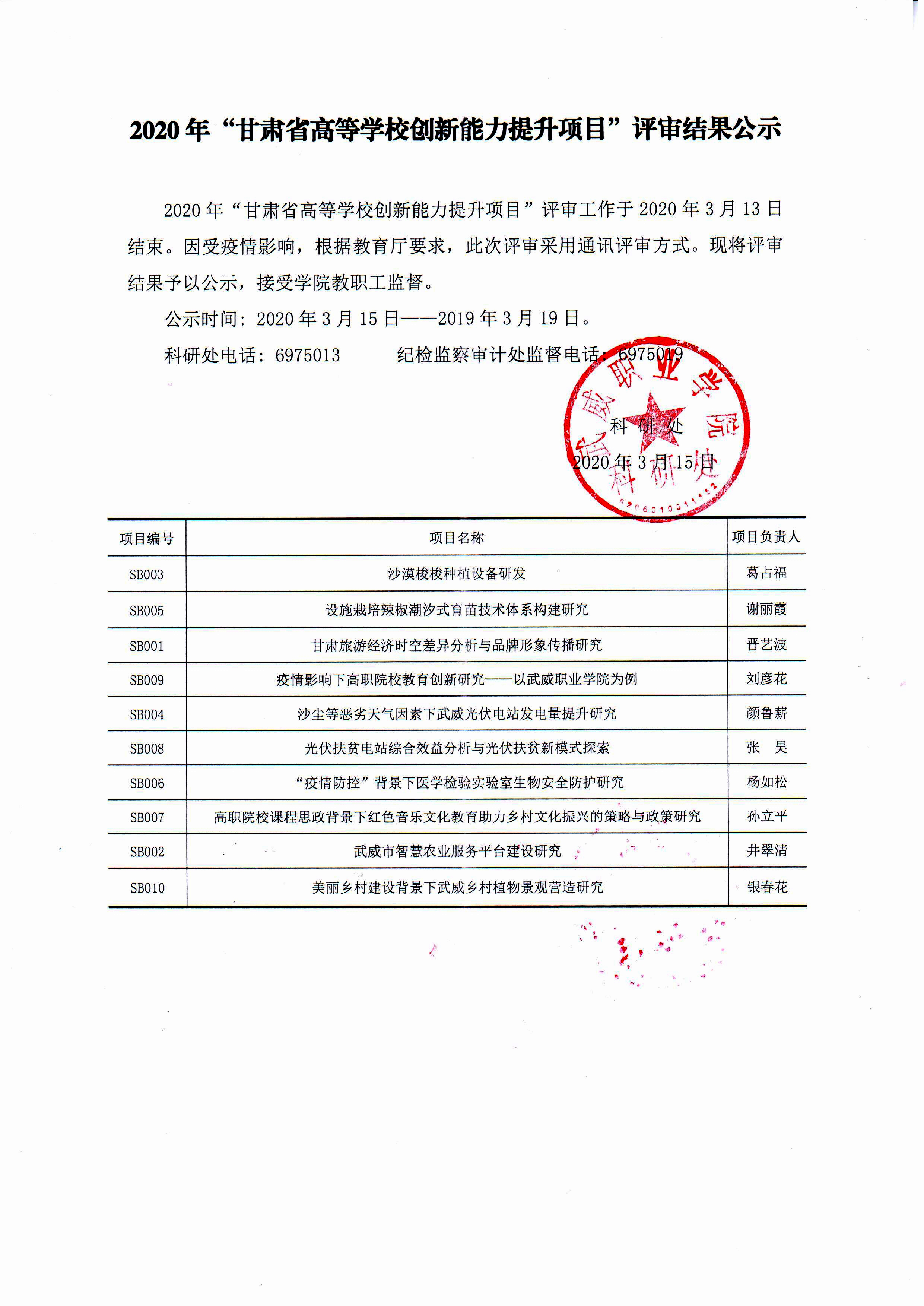 2020年甘肅省教育廳高等學(xué)??蒲许?xiàng)目結(jié)項(xiàng)評(píng)審結(jié)果公示