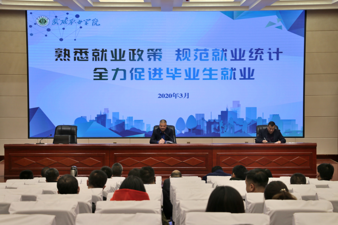 為進(jìn)一步促進(jìn)學(xué)院畢業(yè)生就業(yè)工作,加強(qiáng)就業(yè)工作服務(wù)水平,做好就業(yè)統(tǒng)計(jì)工作。根據(jù)院黨委安排部署,3月31日在大學(xué)生活動(dòng)中心菁英廳召開(kāi)了2020屆畢業(yè)生就業(yè)工作促進(jìn)會(huì)。黨委委員、副院長(zhǎng)王守云,各系黨總支書記、主任、副主任、就業(yè)干事、輔導(dǎo)員、2017級(jí)全體班主任及招就處、雙創(chuàng)中心工作人員共110人參加會(huì)議,招生就業(yè)處處長(zhǎng)蔡柱山主持會(huì)議。