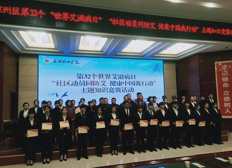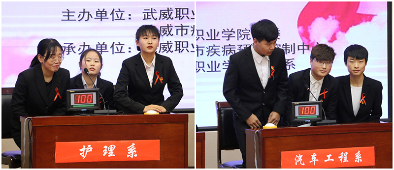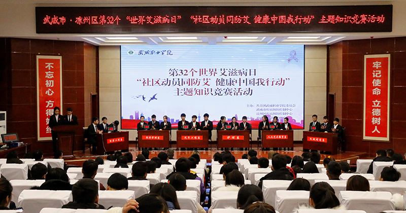 為持續(xù)深入推進大學(xué)生艾滋病預(yù)防教育工作,迎接第32個世界艾滋病日的到來, 12月1日晚,學(xué)院開展了艾滋病知識競賽活動,學(xué)院副院長王永緒、王守云,市疾控中心領(lǐng)導(dǎo)參加活動。此次活動由武威職業(yè)學(xué)院與武威市疾控中心聯(lián)合主辦,護理系承辦,活動的主題為“社區(qū)動員同防艾 .健康中國我行動”。學(xué)院團委及部分系老師,各系學(xué)生代表觀看了比賽。
