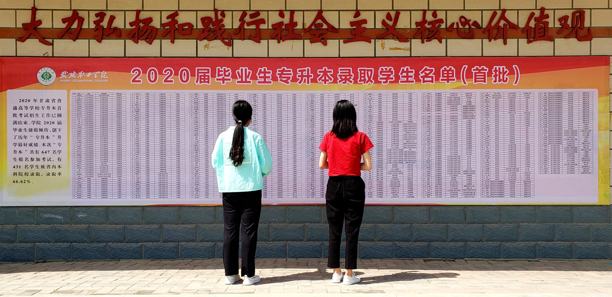 2020年甘肅省普通高等學(xué)校專升本第一批、第二批考試招生工作已圓滿結(jié)束。我院2020屆畢業(yè)生捷報(bào)頻傳,創(chuàng)下了歷年“專升本”升學(xué)的最好成績。726名學(xué)生報(bào)名參加考試,有529名學(xué)生被省內(nèi)本科院校錄取,錄取率為72.87%。